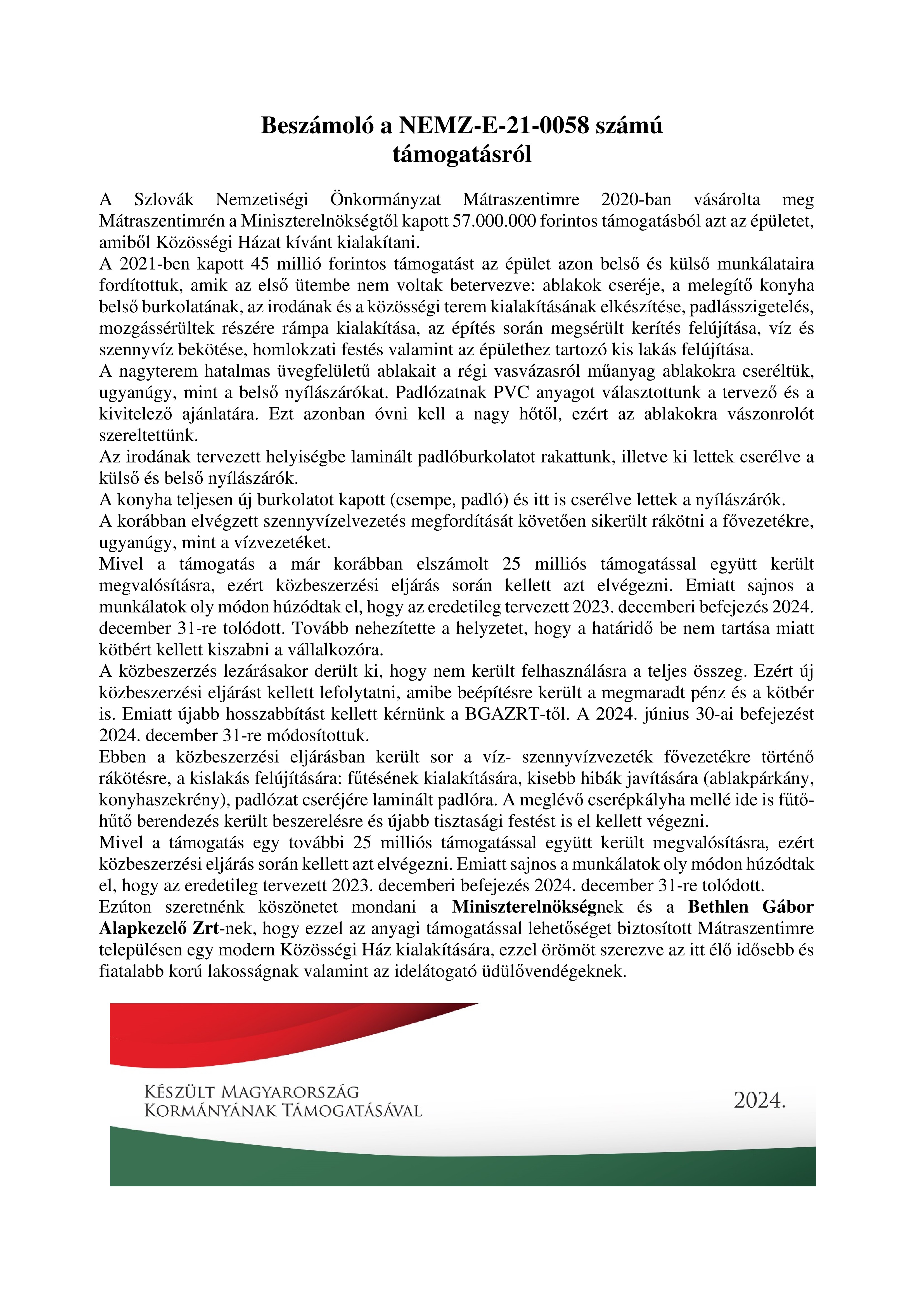 Beszámoló a NEMZ-E-21-0058 számú támogatásról / 2025.01.30. admin küldte be 30 January 2025 időpontban