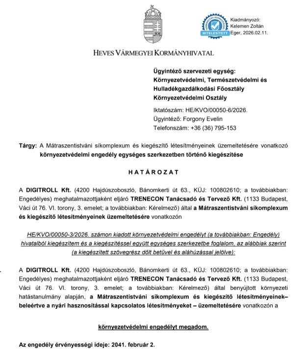 A Mátraszentistváni síkomplexum környezetvédelmi engedély kiegészítése Közzétételek / 2026.02.23. admin küldte be 23 February 2026 időpontban A Mátraszentistváni síkomplexum környezetvédelmi engedély kiegészítése