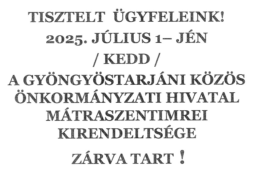 Önkormányzati Hivatal Zárva tartás - 2025. július 1. / 2025.06.30. admin küldte be 30 June 2025 időpontban julius-1-jen-zarva-lesz-a-hivatal.pdf